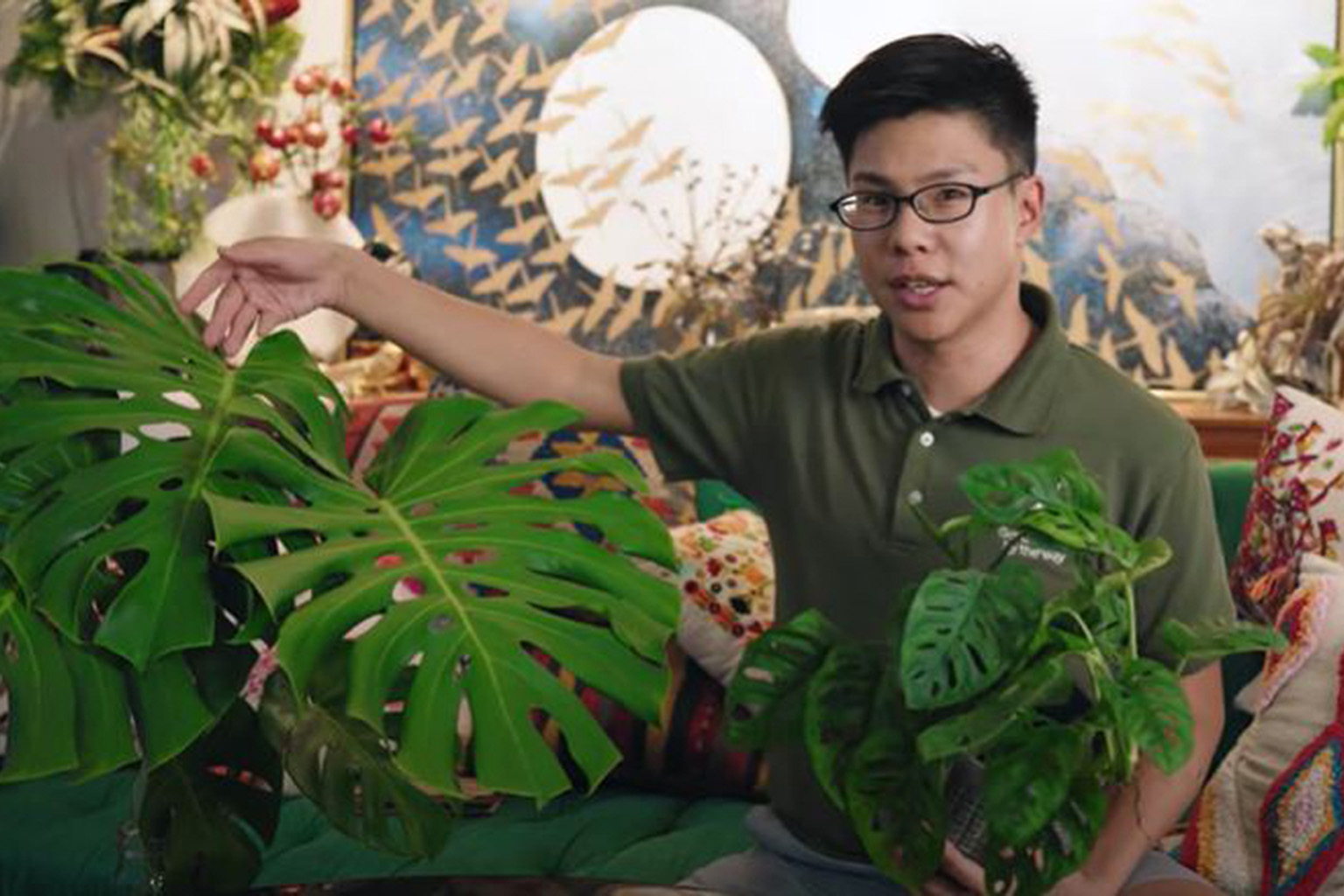 Gardens by the Bay senior researcher Mihkaail Ng explaining how to take care of the Swiss cheese plant.