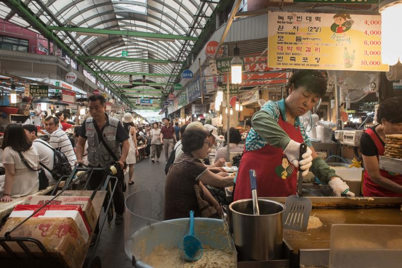 - Gwangjang Market, further down from Dongdaemun Gate, is a traditional market popular with the locals, offering delicious street food, textiles and hanbok (traditional Korean clothing).