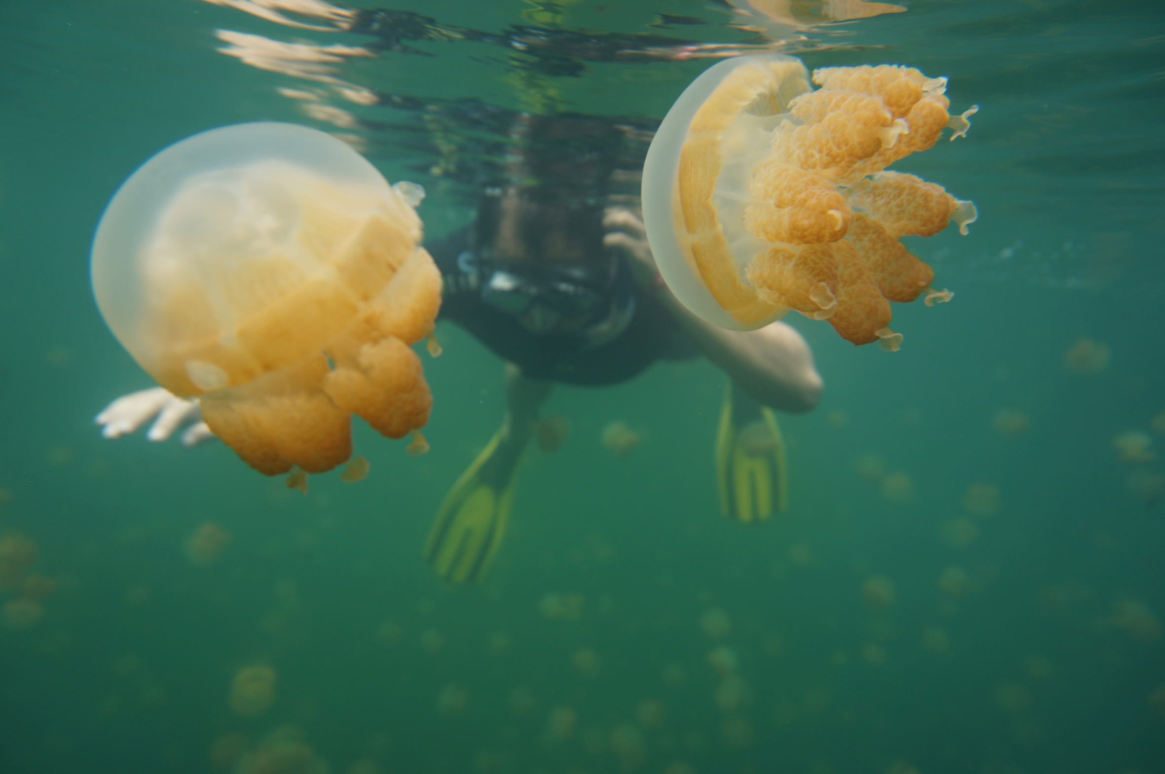 Swim in a lake with jellyfish that have one amazing quirk: no sting.