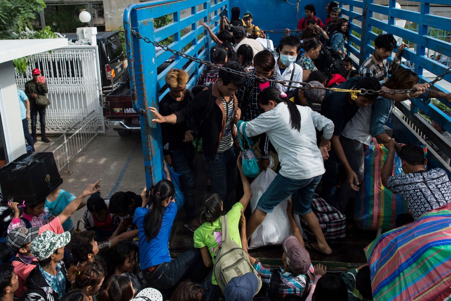 Migrant workers boarding trucks leaving Thailand at the Thai-Myanmar border in Mae Sot, in northern Thailand. Several issues on labour issues still need to be resolved by Asean members.