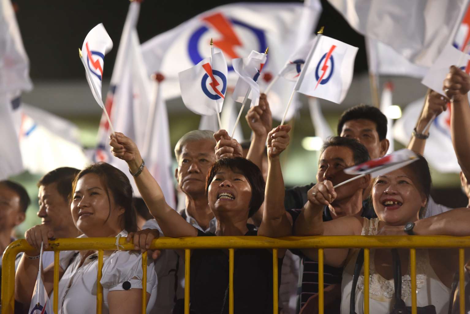 People's Action Party (PAP) supporters gathering at Bedok stadium as they wait for the polling results on Sept 11, 2015.