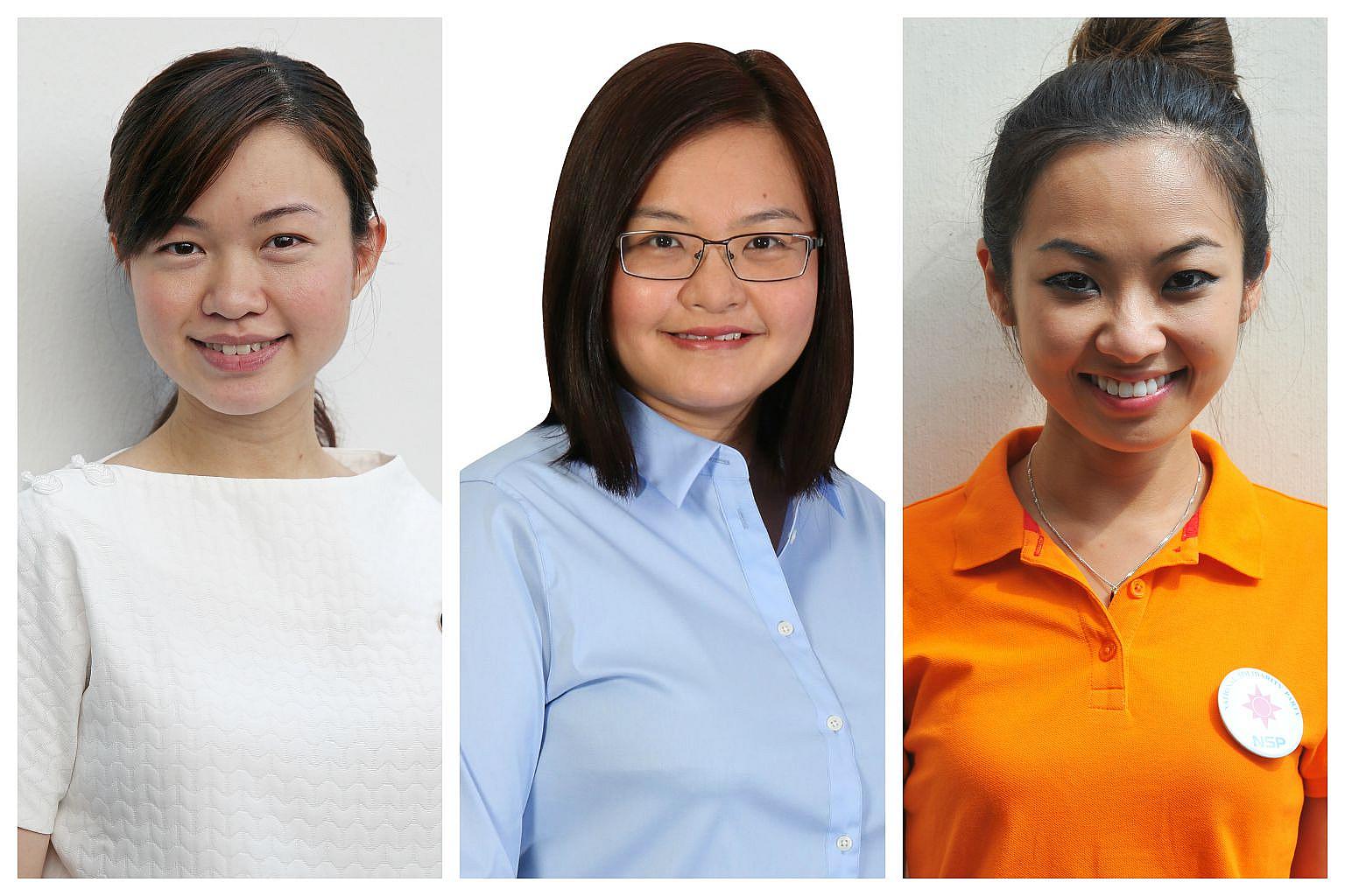 Election candidates (from left) Tin Pei Ling, Lee Li Lian and Kevryn Lim say motherhood is a motivation rather than a stumbling block to their work.