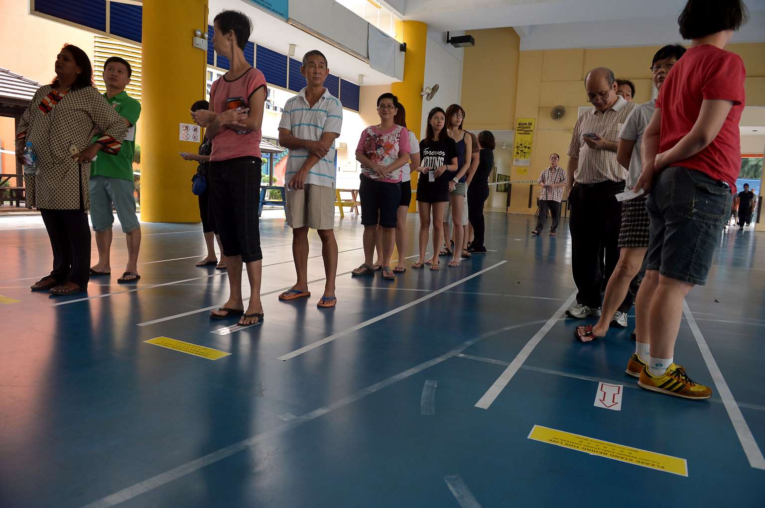Early voters at the holding area at Pei Chun Public School located at Toa Payoh Lorong 7 on Polling Day.