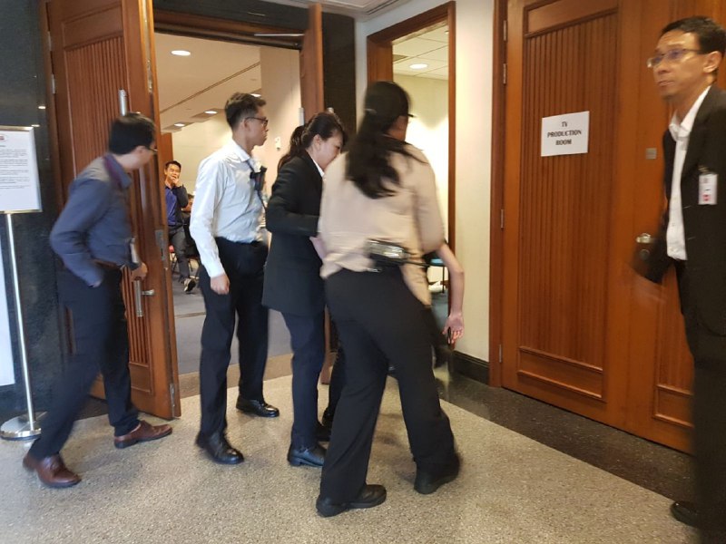 Parliament staff later returned with police officers, and asked Ms Han to leave the room.