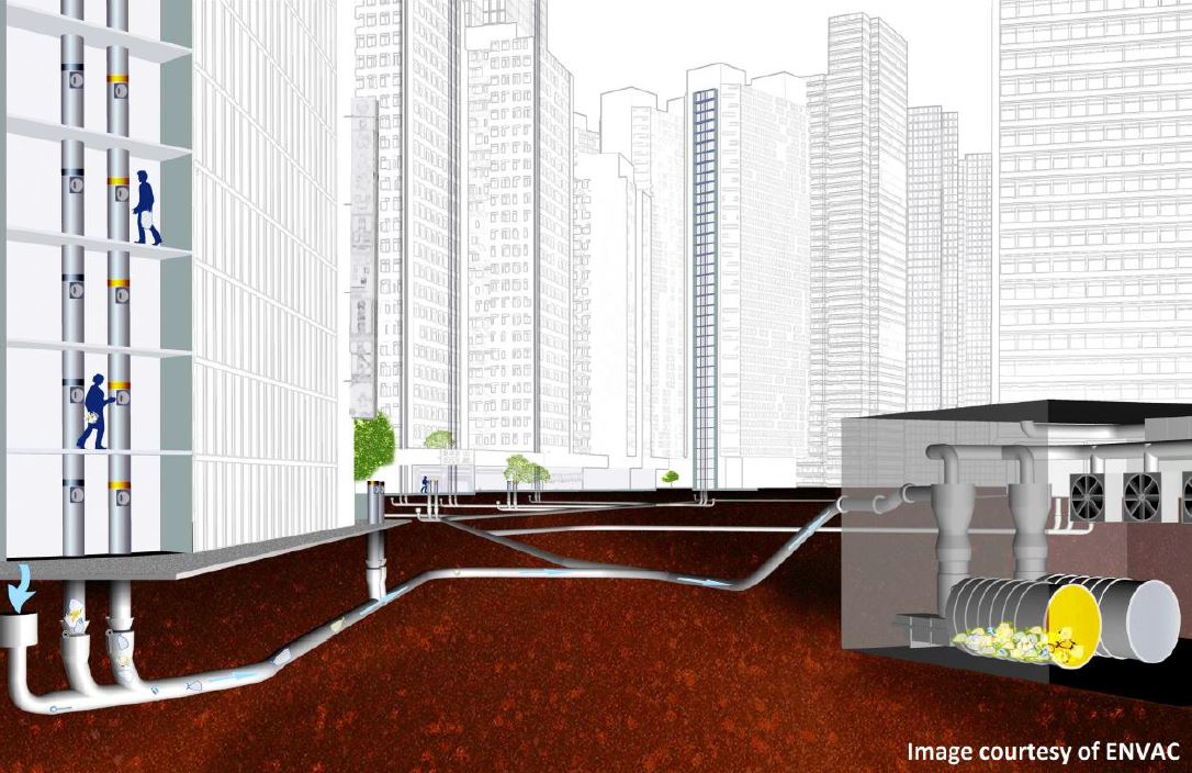 In addition, those developments with at least 500 housing units must have a pneumatic waste conveyance system, which will transport waste from rubbish chutes to a central collection area via a network of pipes, removing the need to manually collect rubbish.