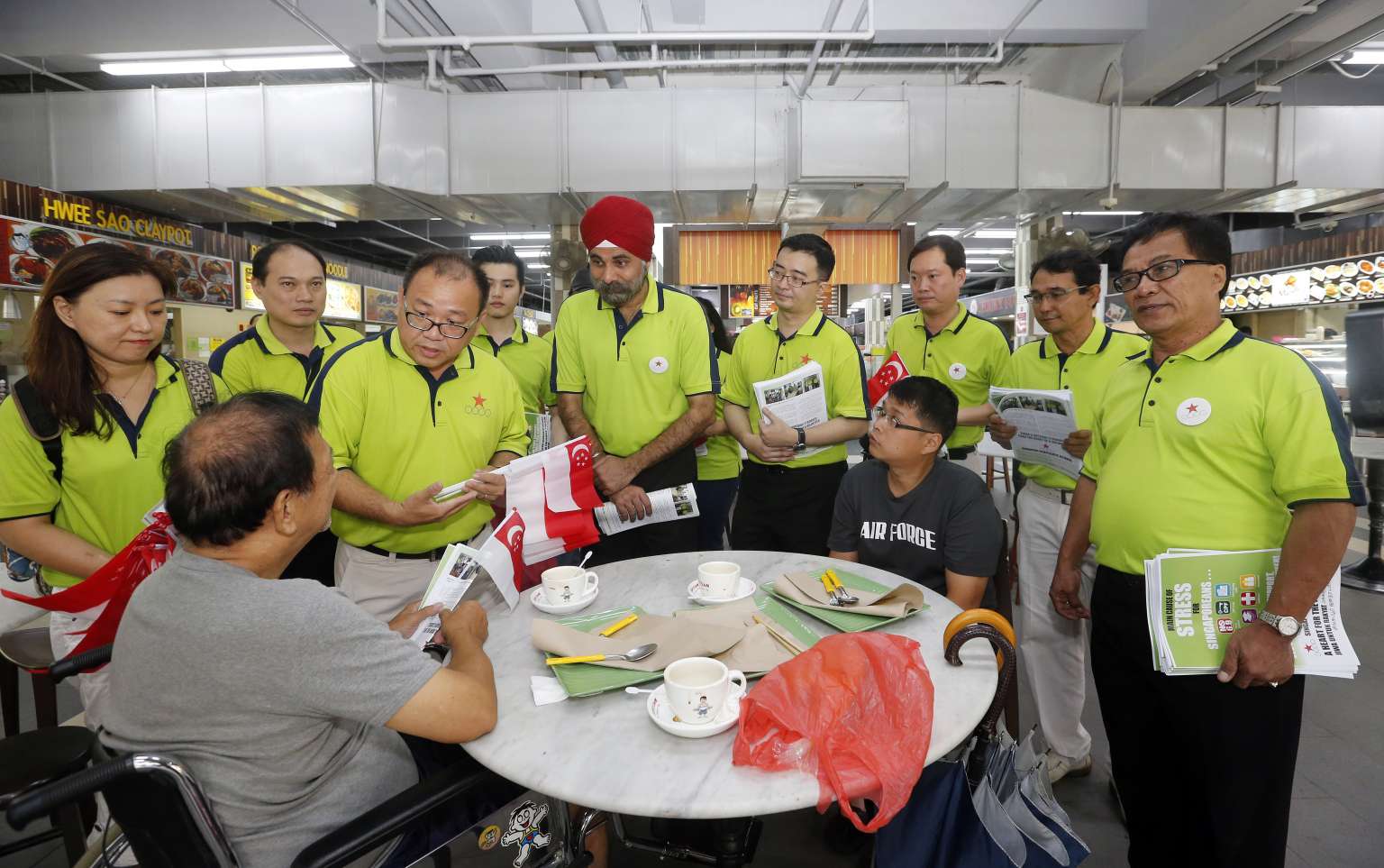 Members of the Singapore Democratic Alliance distributing party leaflets during its walkabout in Sengkang on Aug 1, 2015.