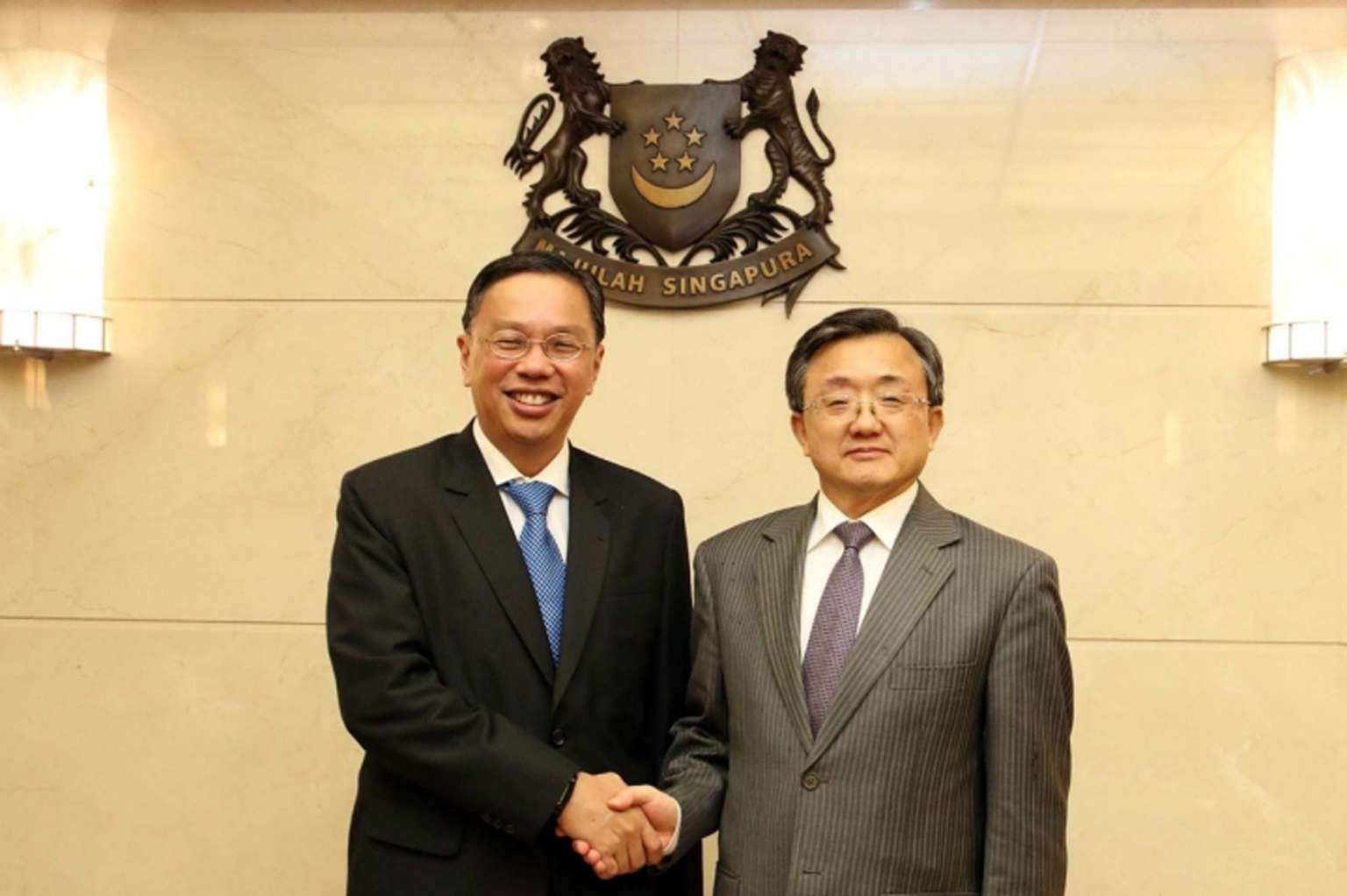 Permanent Secretary (Foreign Affairs) Chee Wee Kiong (left) met Vice Foreign Minister of the People’s Republic of China Liu Zhenmin on Jan 17, 2017.