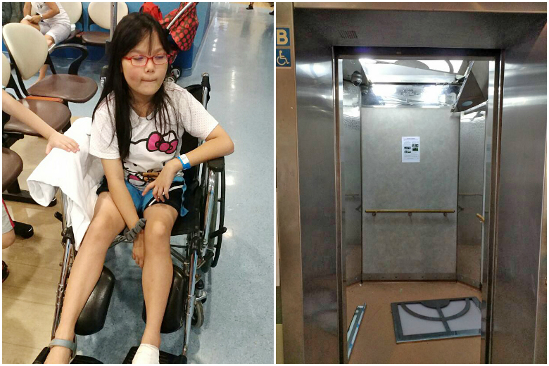 The girl had entered the lift at Block 325A, Sengkang East Way, with her family at about 1pm when the panel covering the lift lights fell.