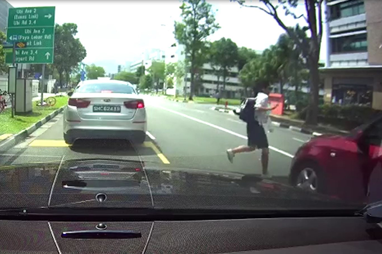 The police told The Straits Times that they were alerted to the accident involving a car and a pedestrian in Ubi Road 1, towards Airport Road, at 2.47pm on Monday.