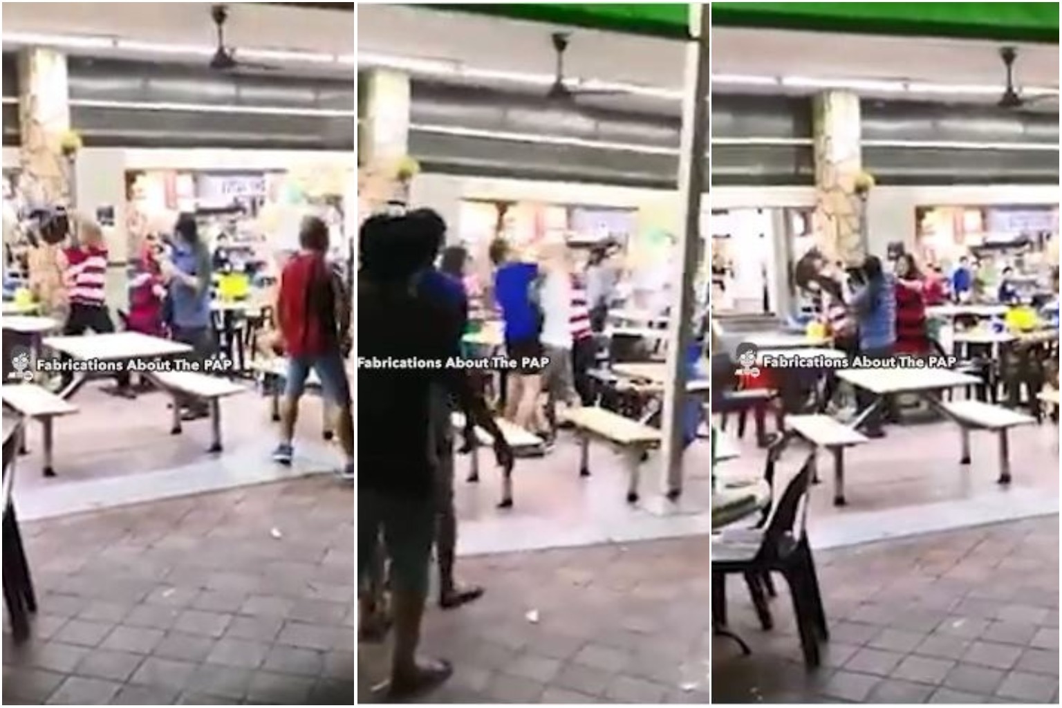 A video posted on Facebook page Fabrications About The PAP shows the two men hurling vulgarities at each other. A man in red is shown picking up a bottle, while another man in blue repeatedly taunts him, shouting at him to "come out".