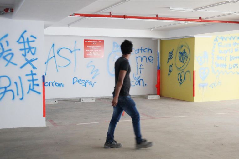 In a statement on Tuesday, the police said they had received a call on March 17 that graffiti had been found scrawled on walls of the carpark at Block 361, Sembawang Crescent.