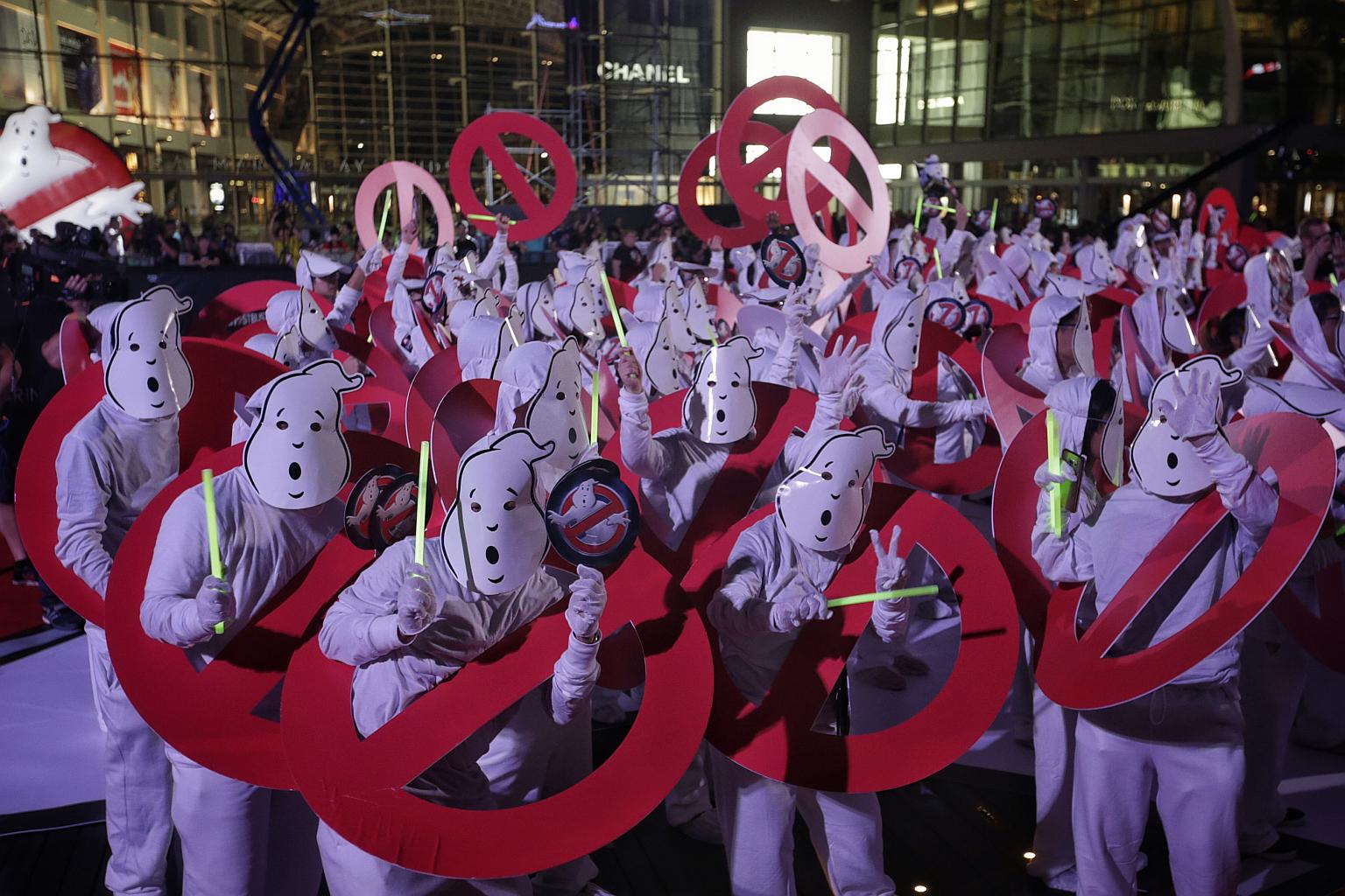Some 263 "ghosts" gathered at the red carpet event at Marina Bay Sands to welcome Ghostbusters star Melissa McCarthy.