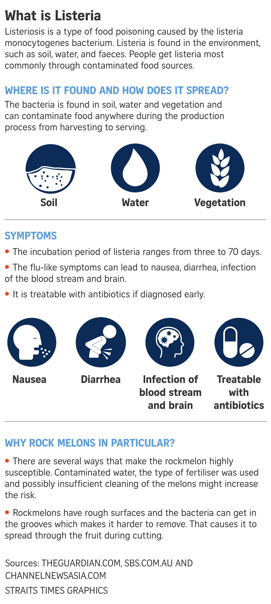 The AVA said it has taken samples of locally sold rockmelons for food safety tests, including testing for listeria, and that the results are pending.