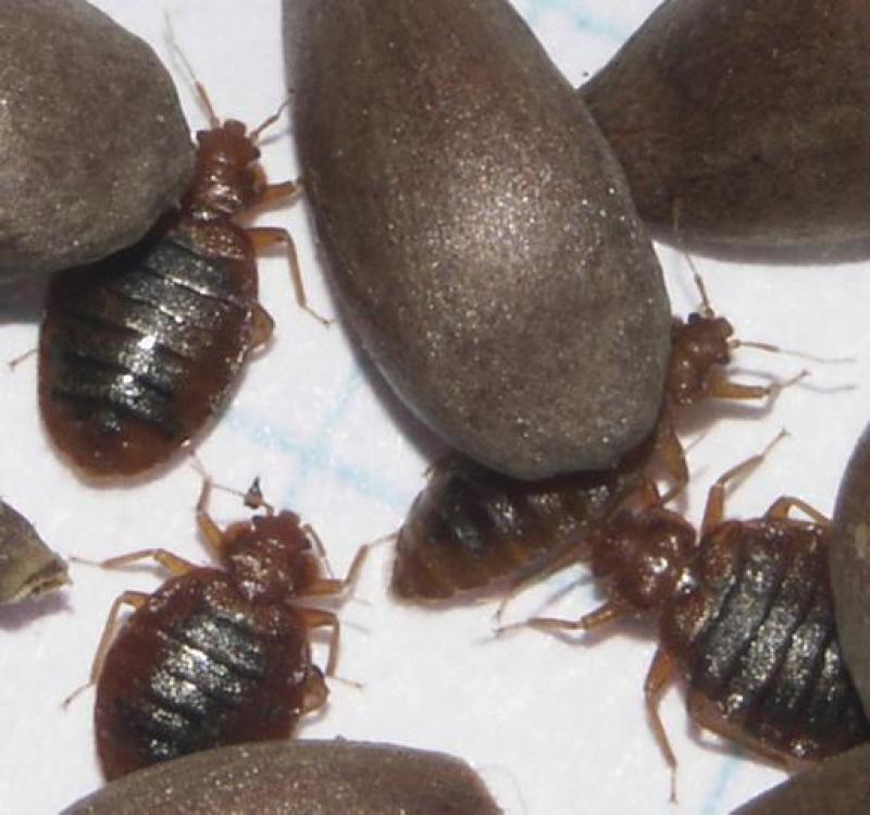 Bedbugs are seen in comparison with apple seeds in this photo provided by the American Museum of Natural History on Feb 2, 2016.