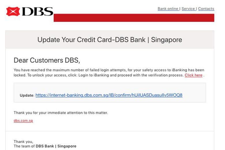 Victims have reported receiving e-mails from DBS Bank or Singapore Airlines asking them for your personal information and credit card details.