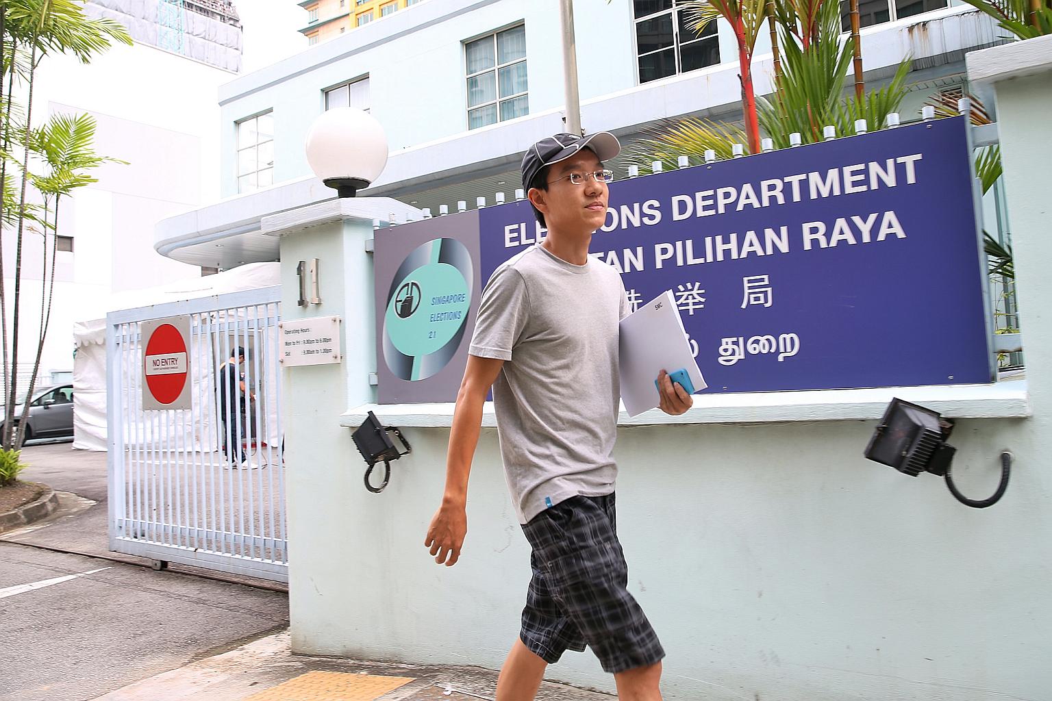 Uber driver Shirwin Eu, 32, leaving the Elections Department after collecting nomination papers on April 21. He plans to contest in the Bukit Batok by-election.