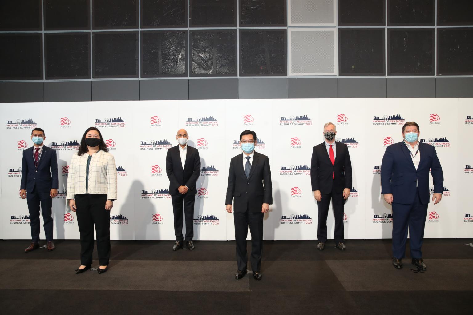 Deputy Prime Minister Heng Swee Keat (fourth from left) meets AmCham members on the sidelines of the AmChams of Asia Pacific Business Summit 2021.