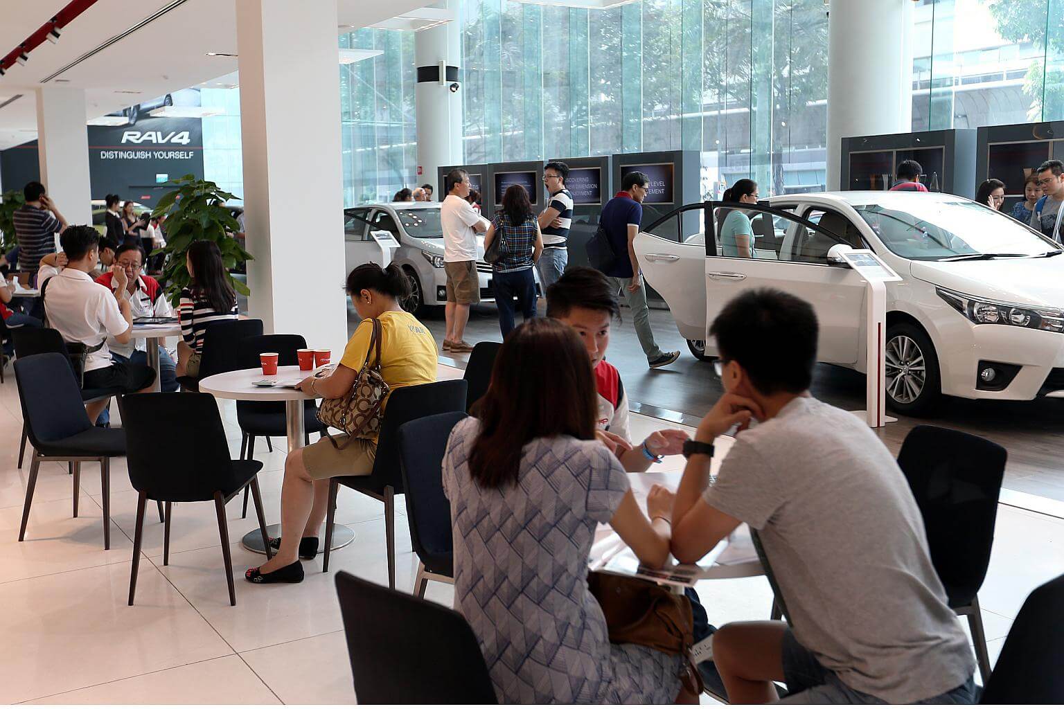 Potential car buyers at Borneo Motors’ Leng Kee Showroom, on May 29, 2016.