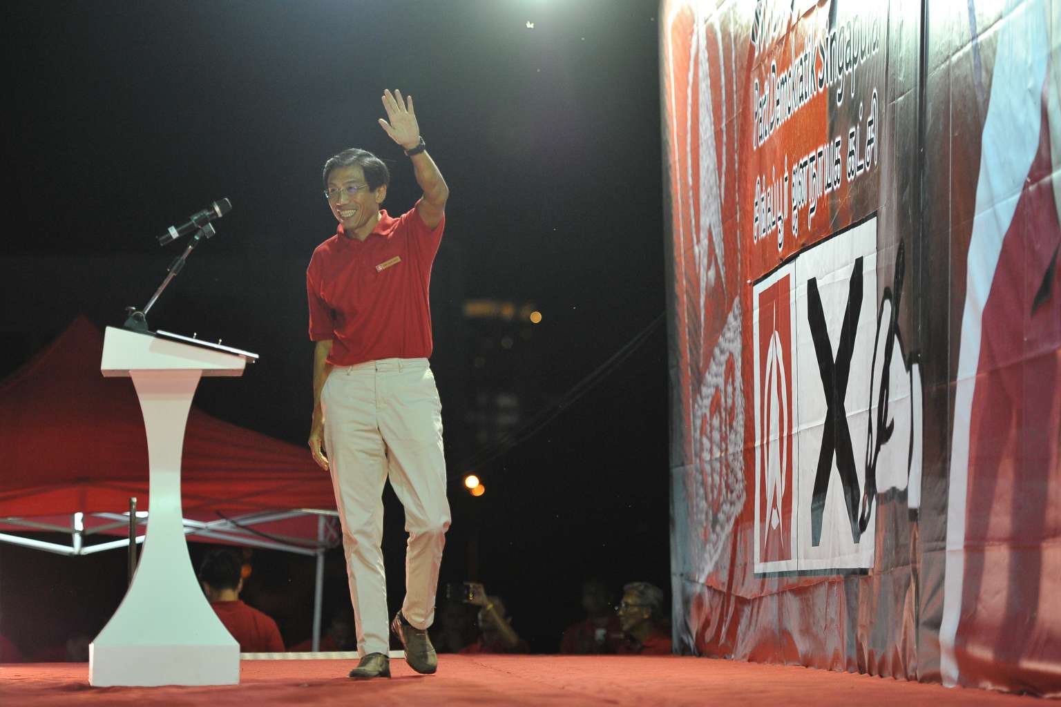 Dr Chee Soon Juan arriving on stage to speak at the SDP rally at the field along Bukit Batok Industrial Park A on May 03, 2016.