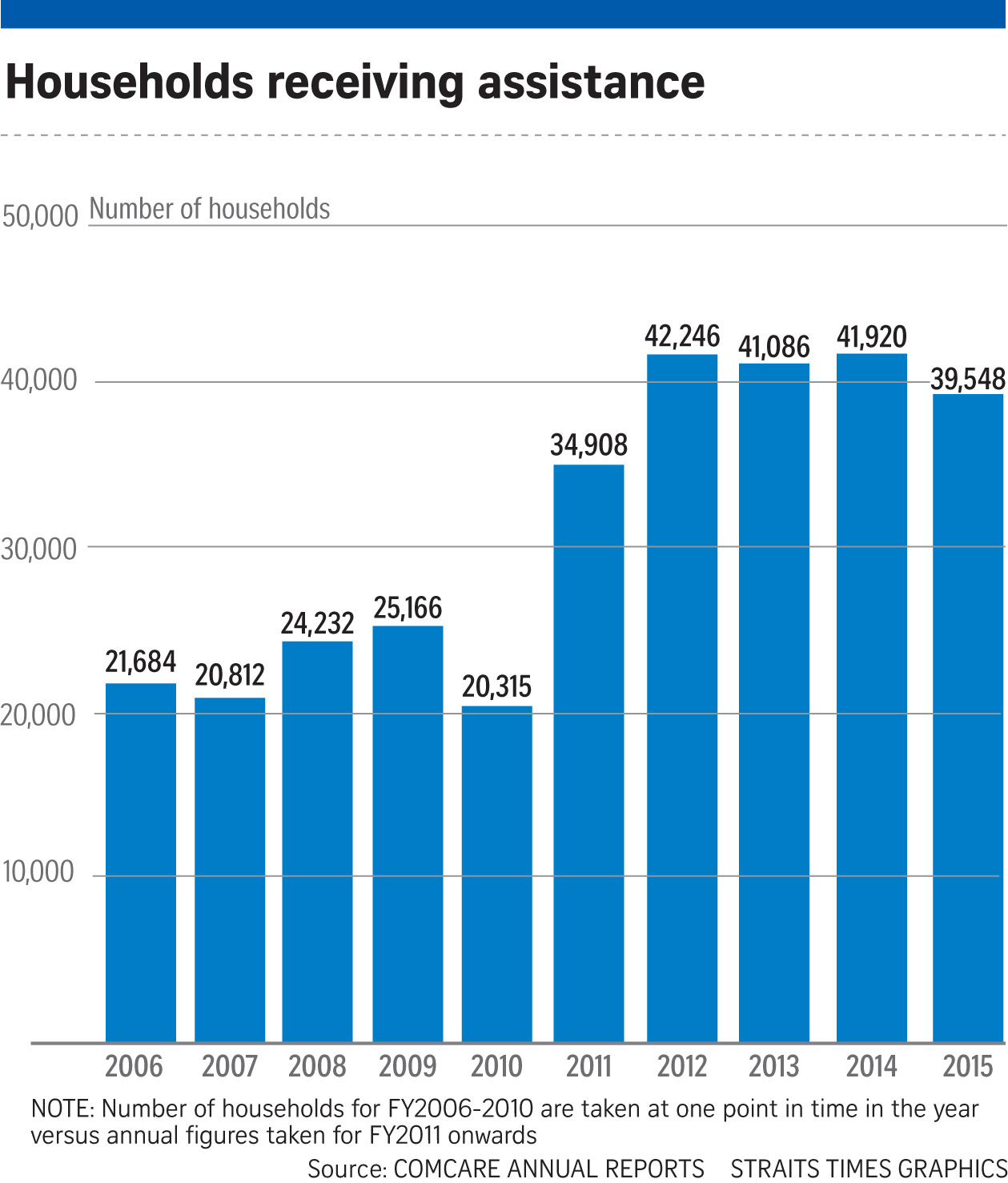 The Ministry of Social and Family Development (MSF) said the increase in the number of beneficiaries over the years can be attributed to "policy enhancements, greater accessibility to help and the economy slowdown in recent years".