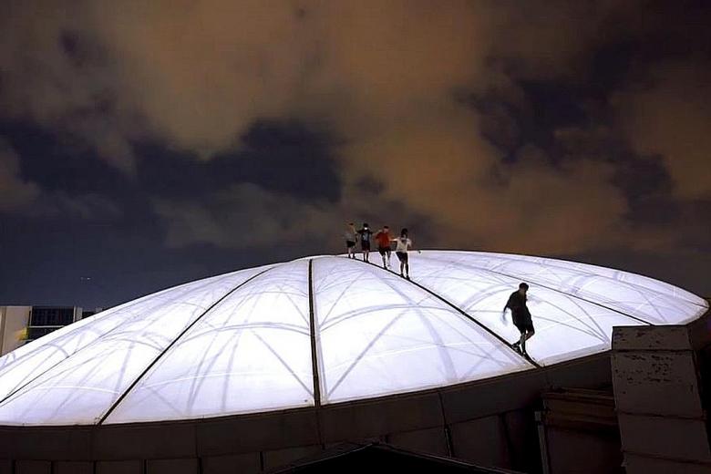 SINGAPORE (THE NEW PAPER) - A group of parkour enthusiasts who performed stunts such as scaling the glass dome roof of Eastpoint Mall in Simei and walking on top of railings on a Pan-Island Expressway (PIE) flyover could be reported to the police.