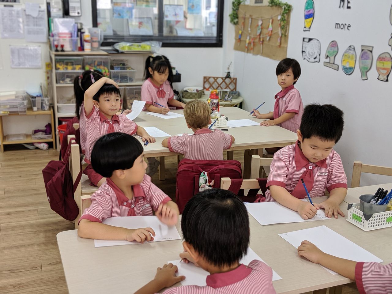 Children at St James' Church Kindergarten's Gilstead campus making cards and writing notes for healthcare workers on Feb 14, 2020.