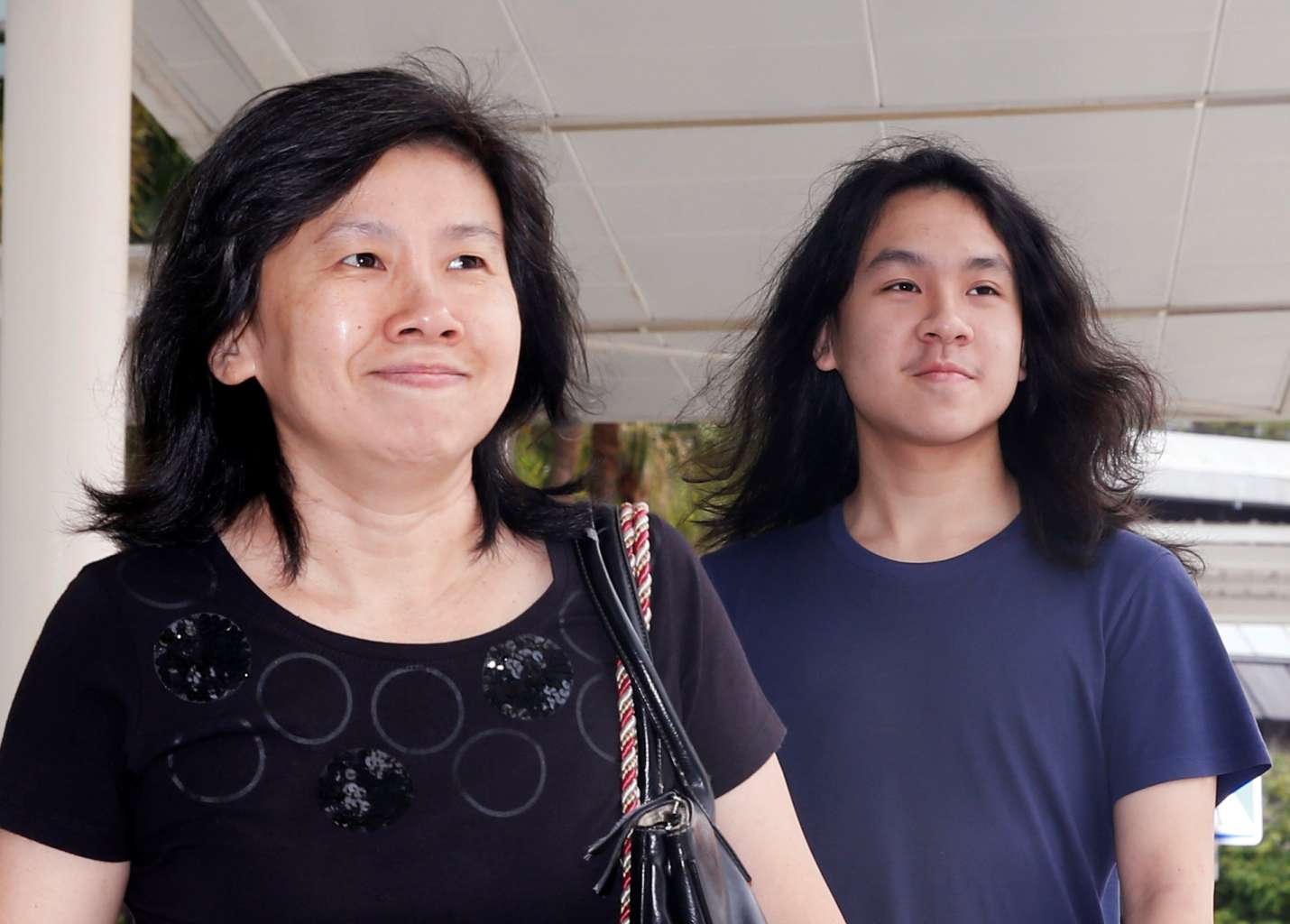 Teen blogger Amos Yee arrives with his mother at the State Courts in Singapore on Sept 28, 2016.