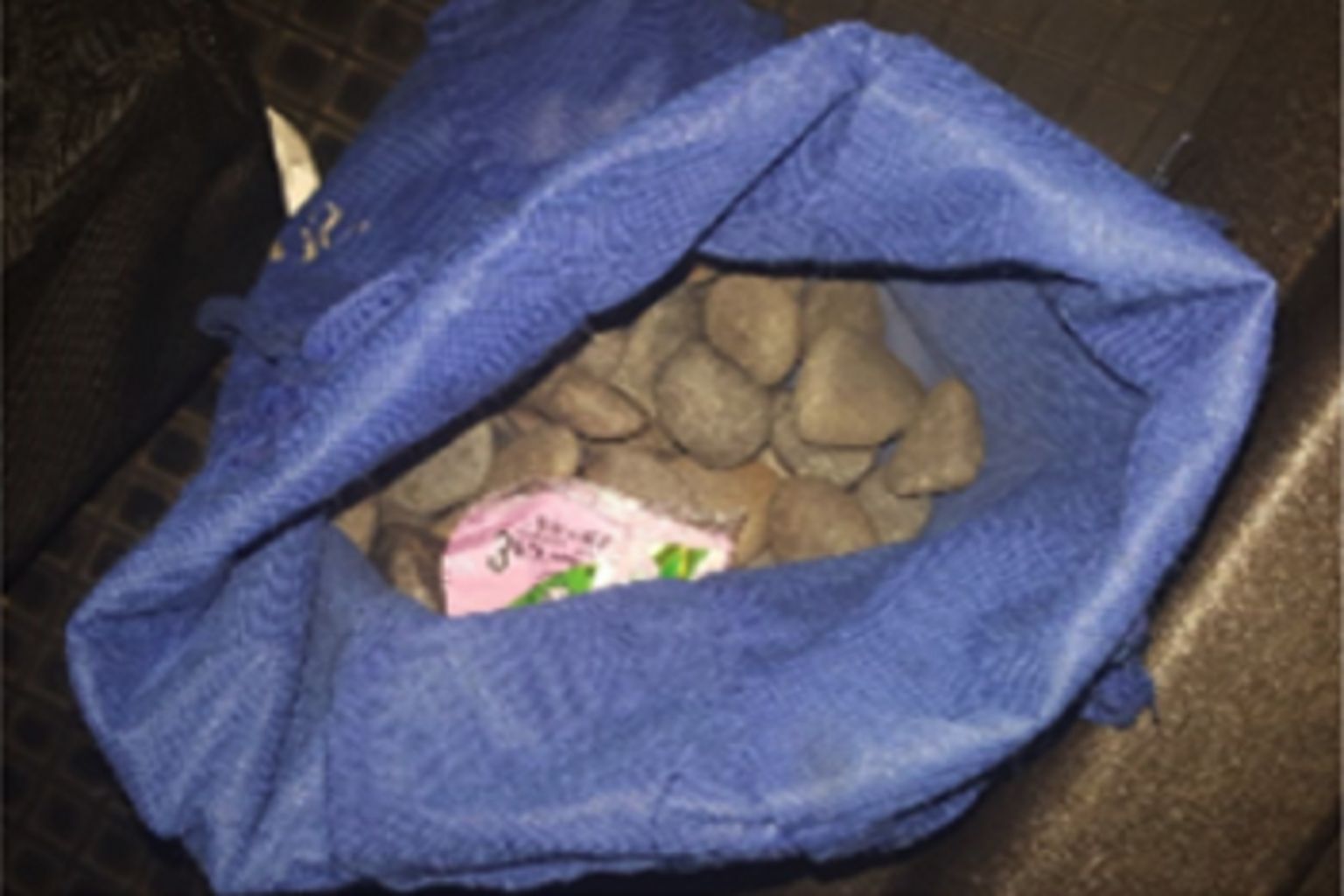 A bag of pebbles was found in the suspect's vehicle and seized as case exhibits.