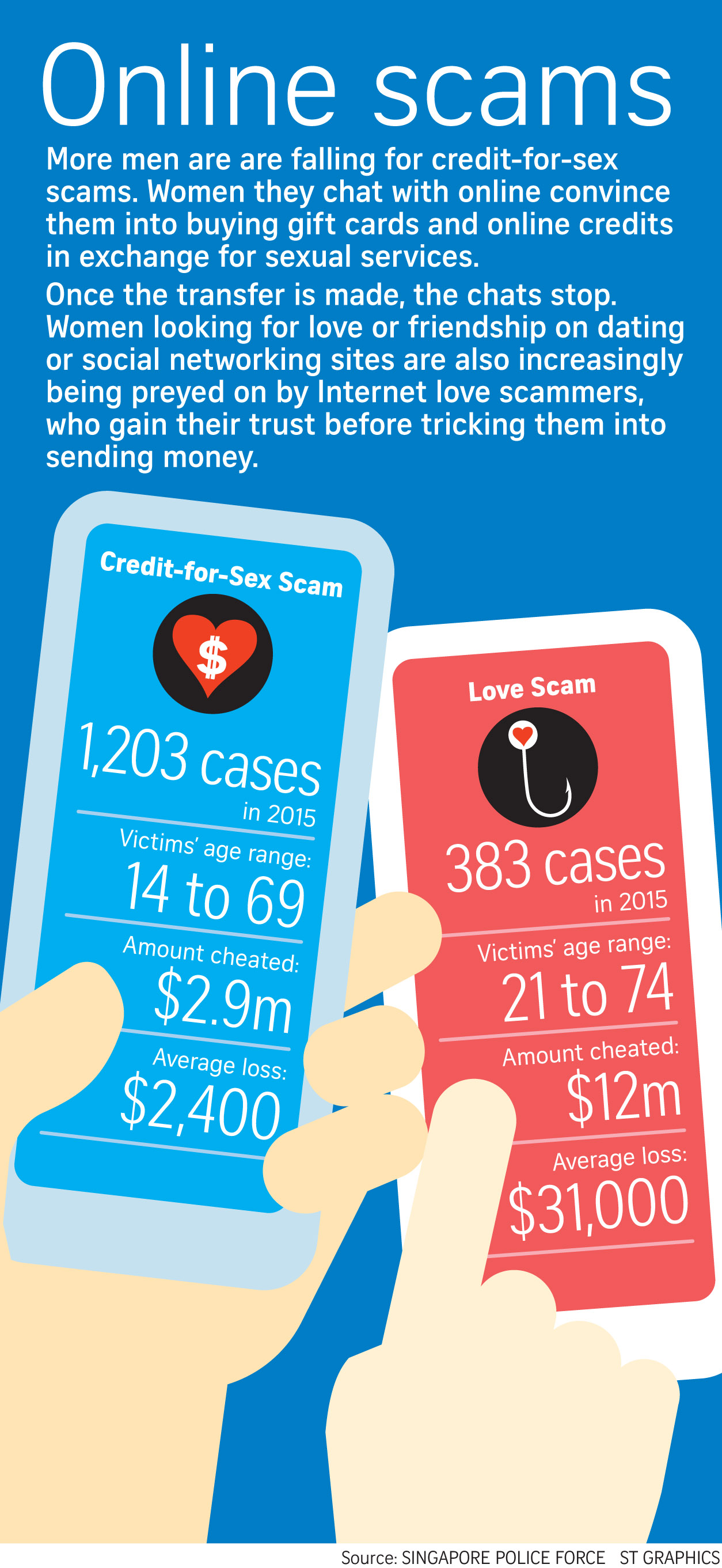 Singapore saw a sharp rise in online crime cases last year, with men making up the biggest group of victims: More than a thousand were tempted into handing over money for sexual services that never materialised.