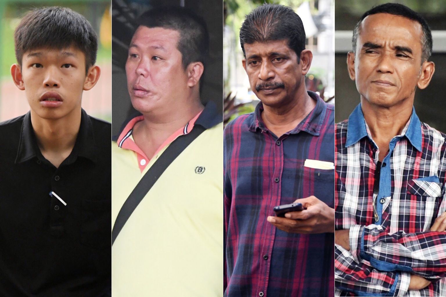 SINGAPORE - Four men were charged in court on Thursday (Nov 23) for their alleged involvement in unlawful societies. This follows videos that went online earlier this year, depicting groups of people shouting gang slogans at funeral processions.