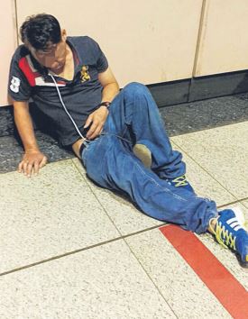 She claimed the suspect, who was sitting beside her and reeked of alcohol, was listening to music on his earphones and appeared to be sleeping.