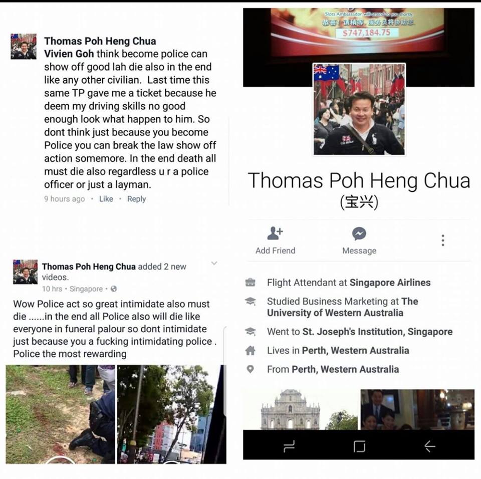 Chua was widely condemned by netizens after he put up a Facebook post criticising Staff Sergeant Nadzrie Matin, 29 - who was killed while on duty after an accident along Serangoon Road last Thursday (June 1) - for issuing him a ticket. The post has since been taken down.