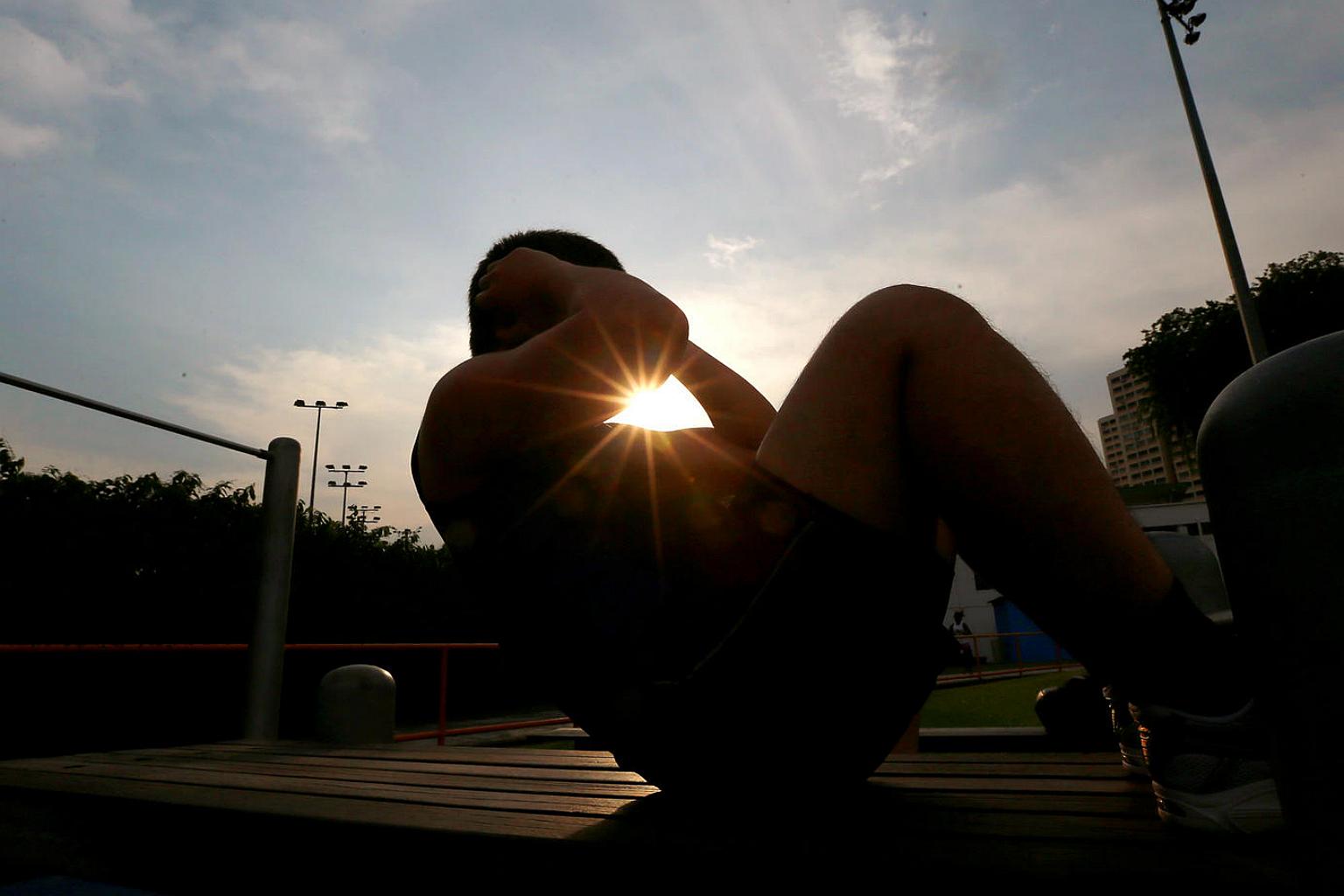 Posed photo of a man performing IPPT. Between 2011 and 2014, Lim Chun Chyi performed IPPT on behalf 72 operationally ready national servicemen (NSmen).