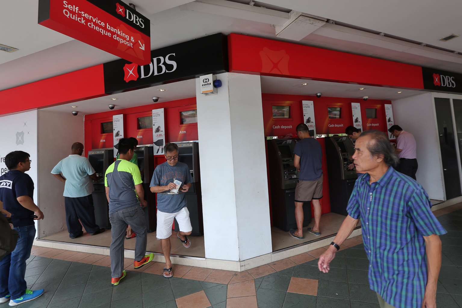 Members of the public depositing cash at DBS ATMs in Bedok Town Centre on Feb 4, 2016.