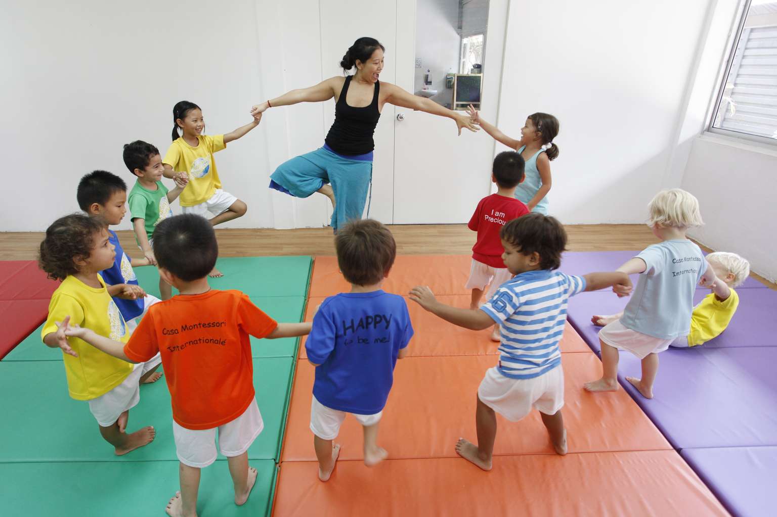 Preschoolers at Casa Montessori Internationale & Babies Inc participating in a lesson conducted by Om Shiva Yoga.