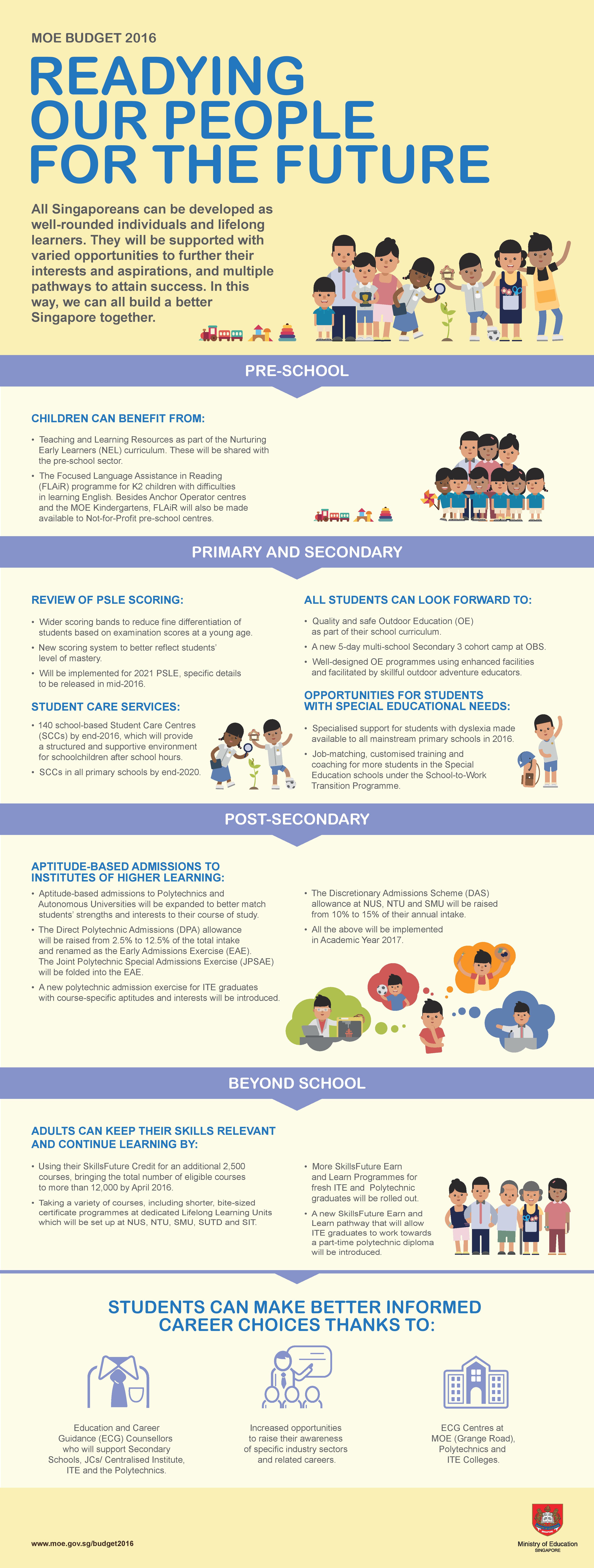 The Ministry of Education (MOE) will take the next few years to develop and test the new exam and secondary school posting systems, said Mr Ng. The posting system will still be a fair and transparent system based on academic merit, he added. More details will be revealed in the next two to three months.