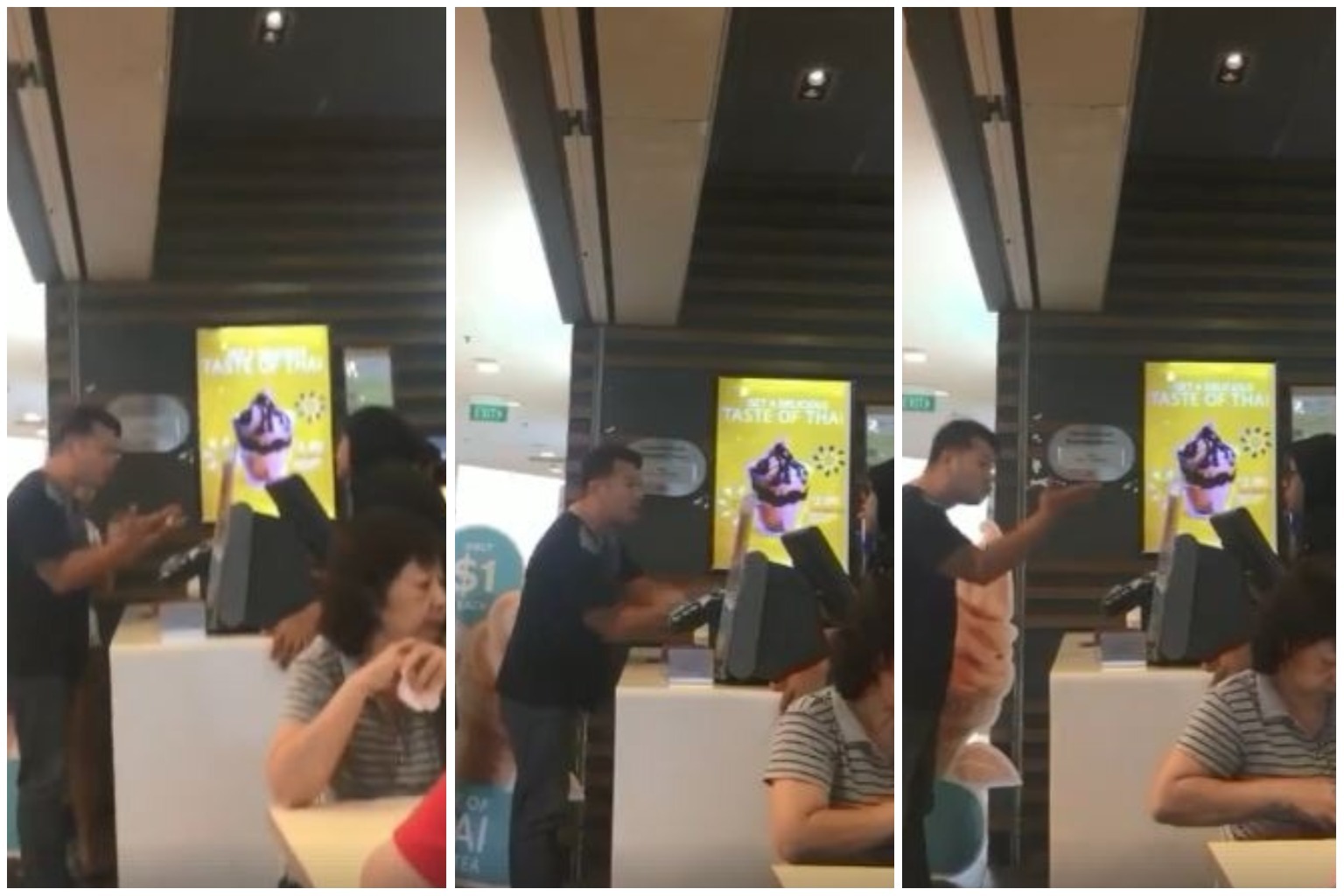 A man, apparently upset over being asked to make payment before he finished his order, railed at a McDonald's employees while buying ice cream at the Hougang Mall outlet.