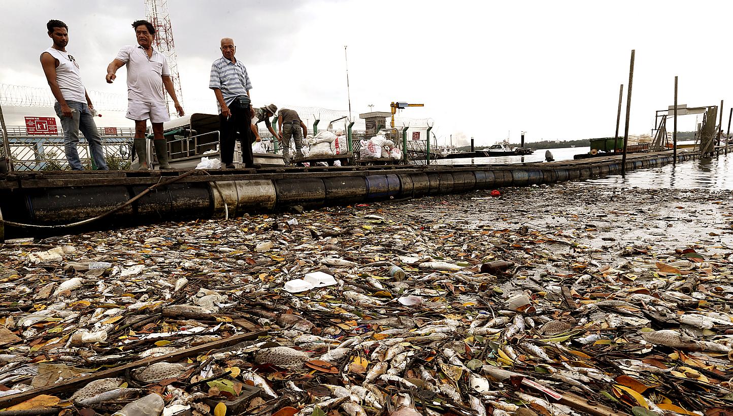 A strong, pungent smell would have been the first thing to hit visitors to Lim Chu Kang jetty yesterday, as hundreds of dead fish washed up along its shores.