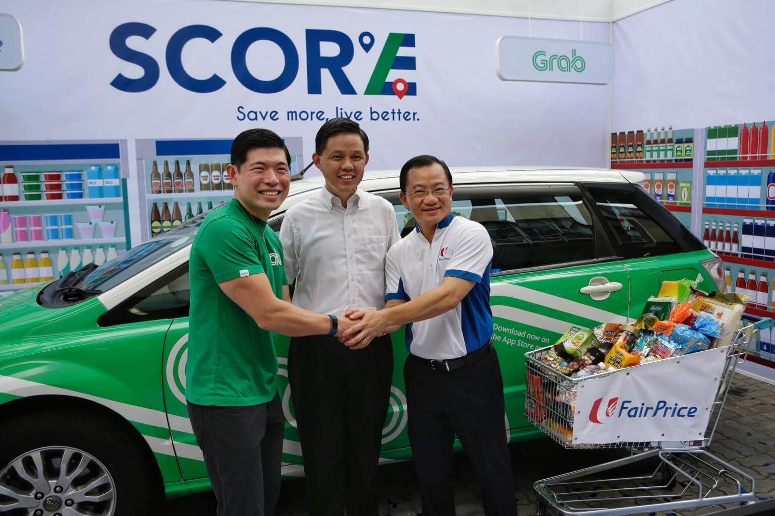 Score was launched at a FairPrice outlet in Lorong 4 Toa Payoh by secretary-general of the National Trades Union Congress and Minister in the Prime Minister's Office, Mr Chan Chun Sing, FairPrice chief executive Seah Kian Peng and Grab group chief executive Anthony Tan.
