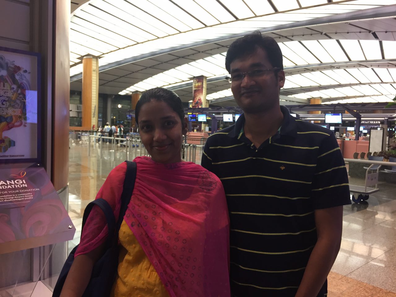 Mr Praveen M S, 32, who works in IT and his wife Priya Praveen, a 27-year-old housewife, at T2 in Changi Airport on Wednesday (May 17).