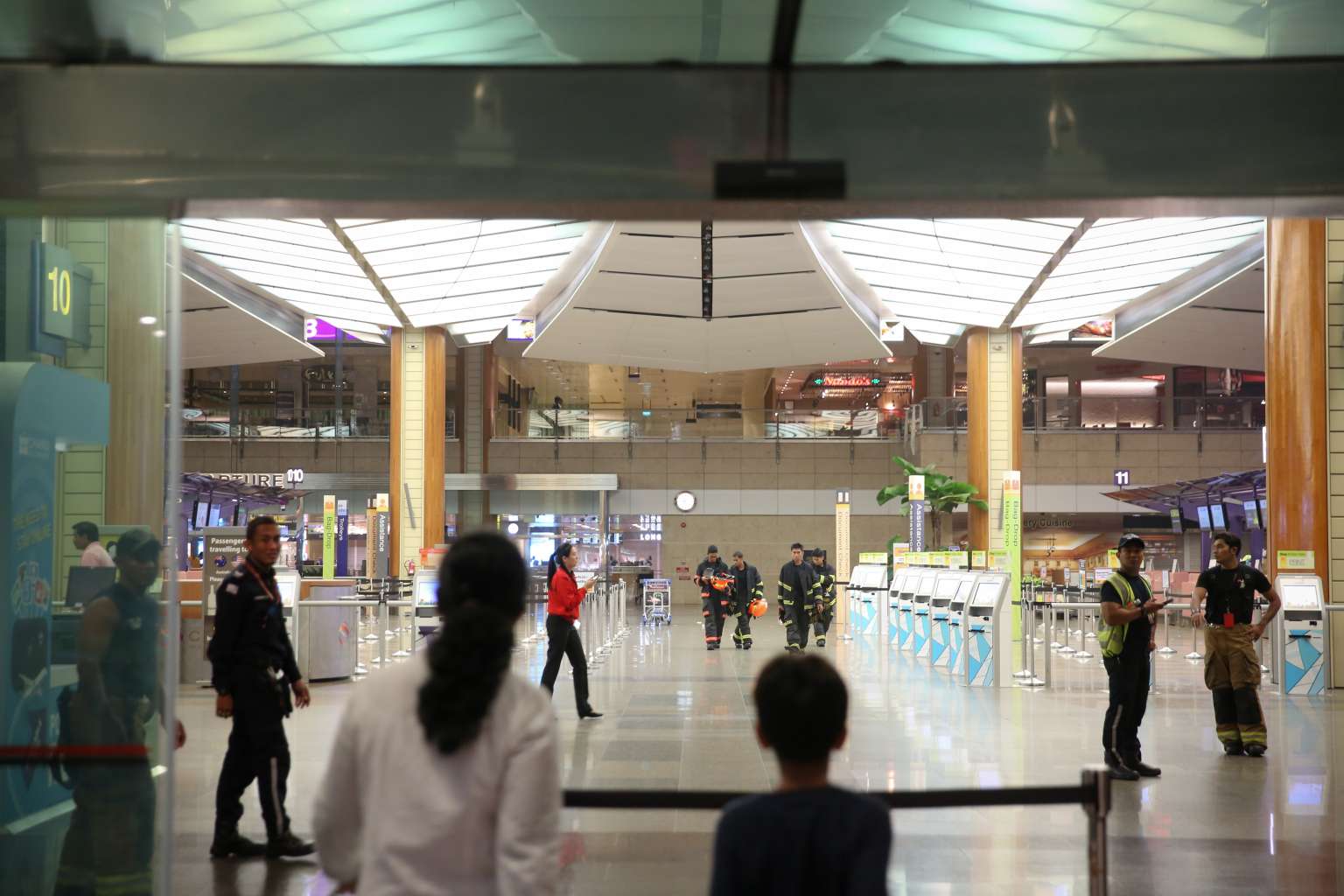 Shortly after the evacuation, firefighters from both the Airport Emergency Service and Singapore Civil Defence Force (SCDF) arrived.