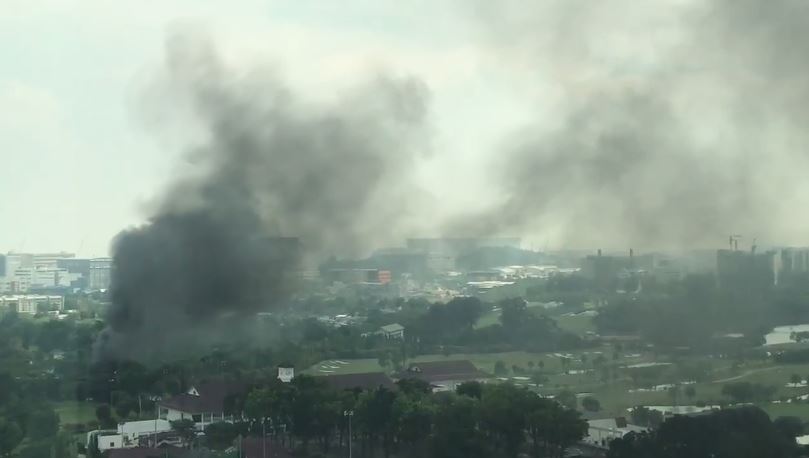 The Singapore Civil Defence Force (SCDF) said it was alerted to the blaze, which an eyewitness said sent columns of thick black smoke billowing into the air, at 1 Penjuru Road at around 2.15pm.