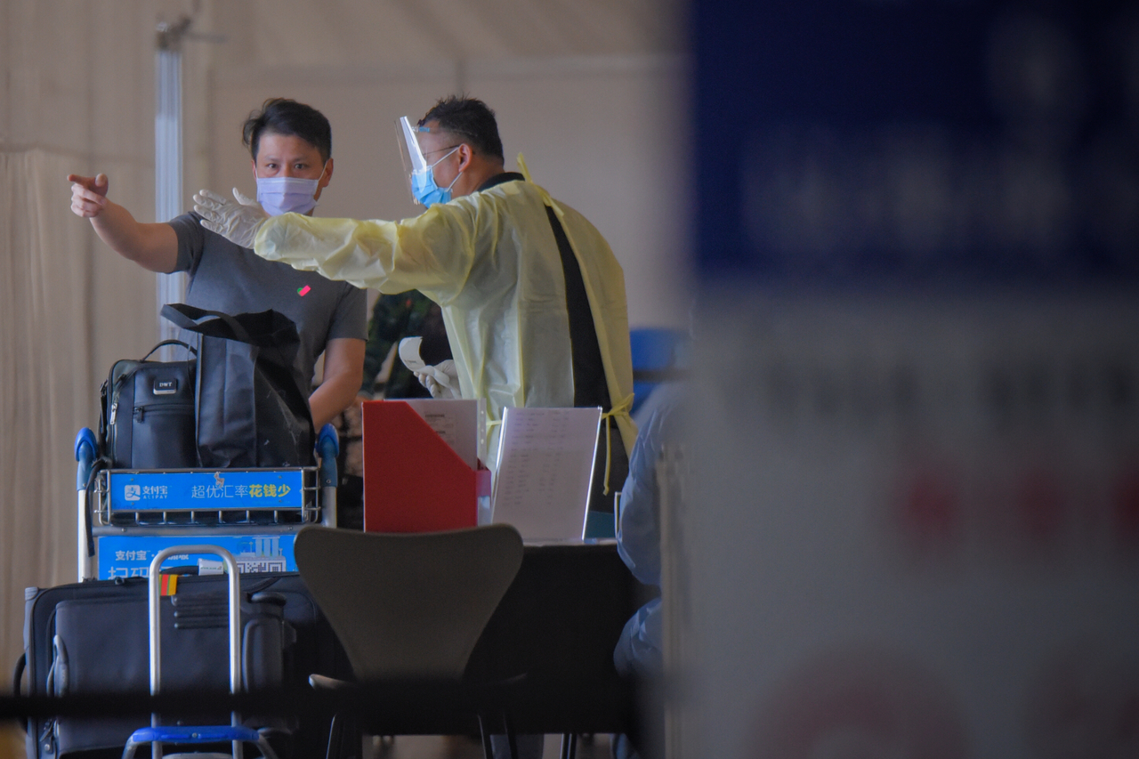 A man exiting the Covid-19 polymerase chain reaction test facility at Changi Airport Terminal 3 on Feb 10, 2021.