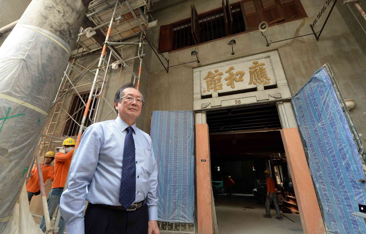 Professor Lai Ah Keow, president of the Hakka clan association, outside the Ying Fo Fui Kun building in Telok Ayer Street.