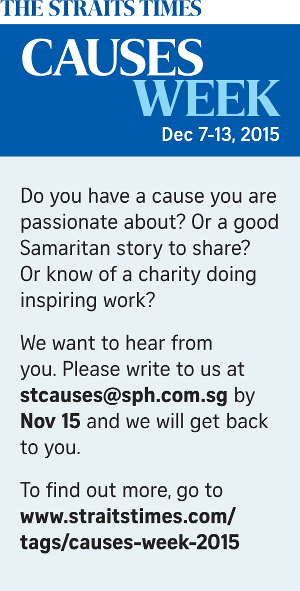 Said Straits Times deputy editor Sumiko Tan: "We want to do our part by publishing these worthy causes, which is why we are bringing back Causes Week."