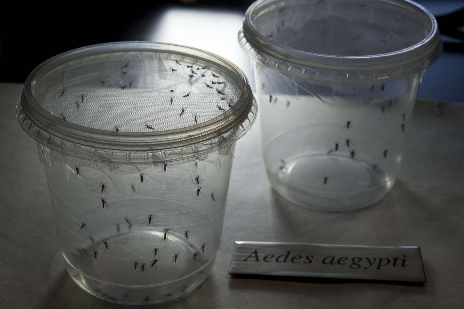 Aedes mosquitoes kept in containers at a lab at the University of Sao Paulo.