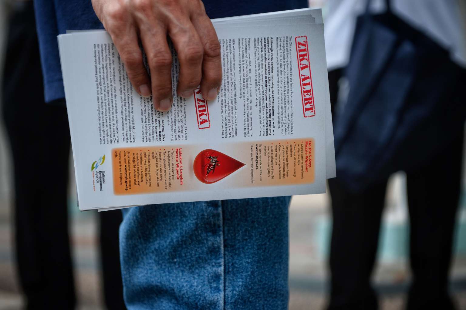 A Town Council member holding an informational Zika leaflet before giving them out to residents on Sept 1, 2016.