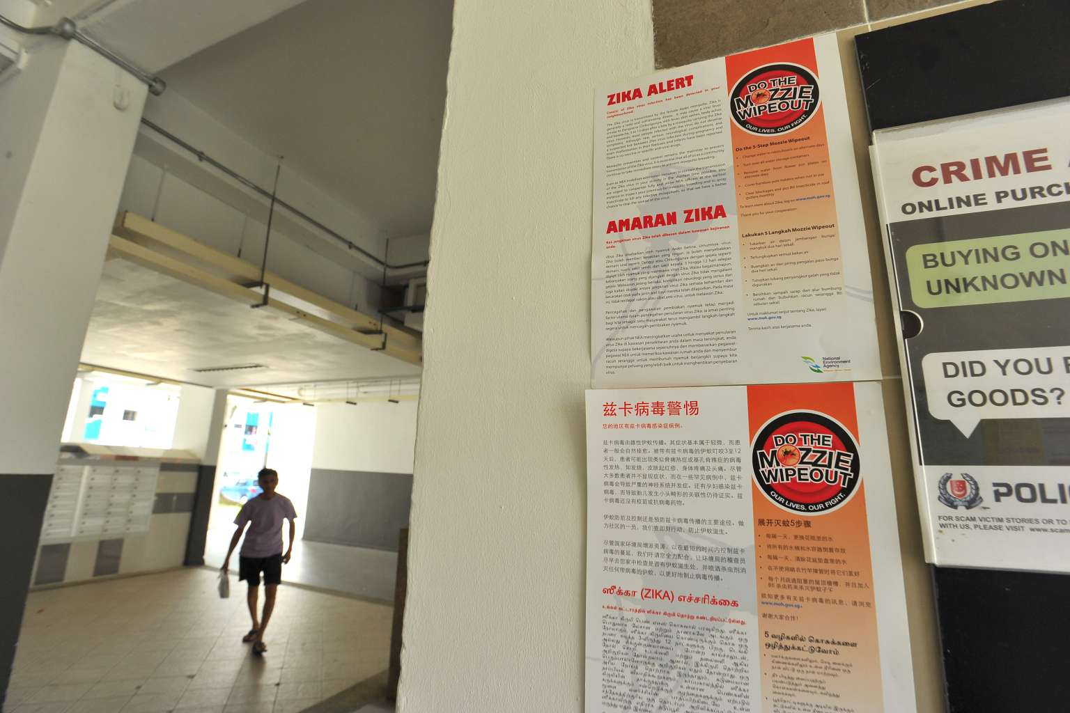 Zika alert poster outside the lift below Block 107 Aljunied Crescent on Sept 2, 2016.