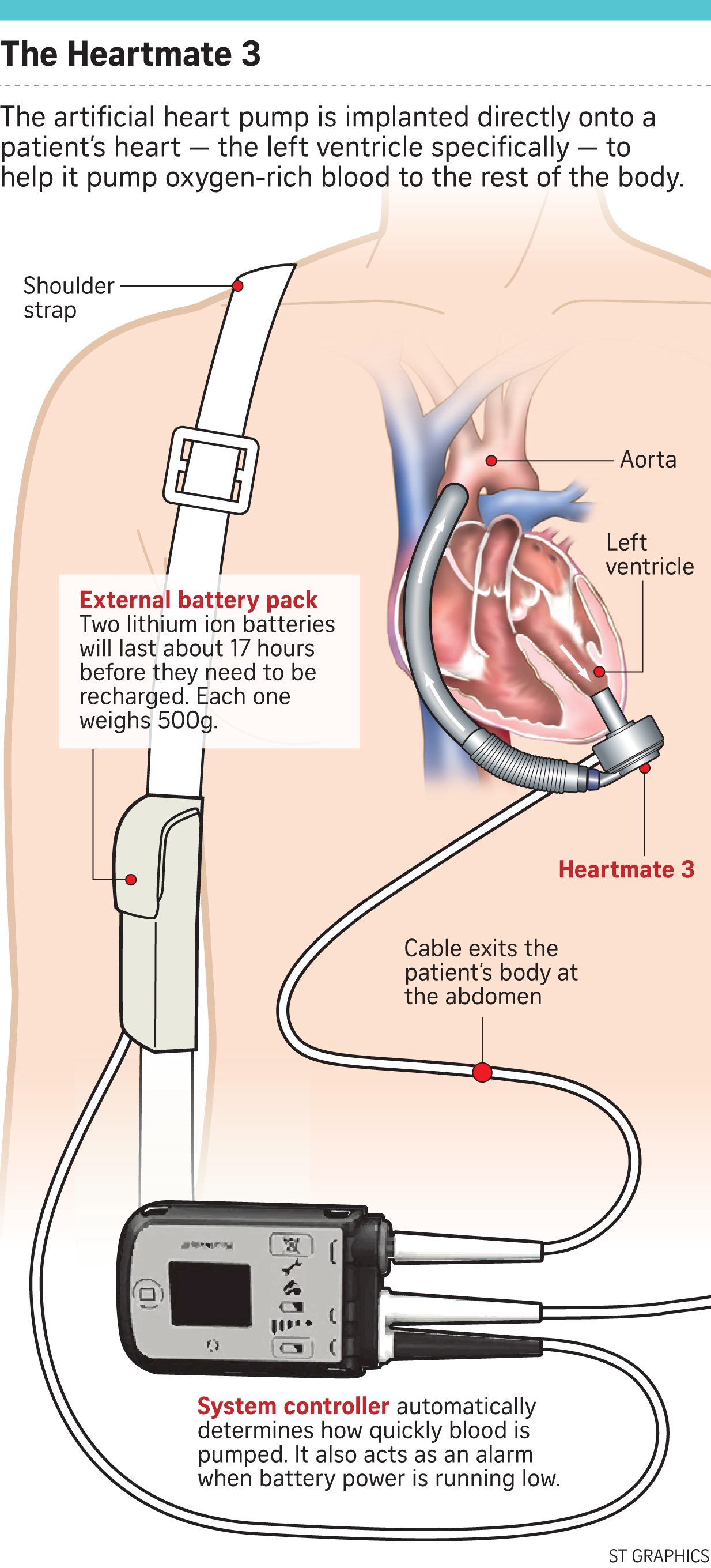The Heartmate 3 is the third type of heart assist device introduced at NHCS. The two older devices, still in use, have survival rates of about 91 per cent and 90 per cent each.