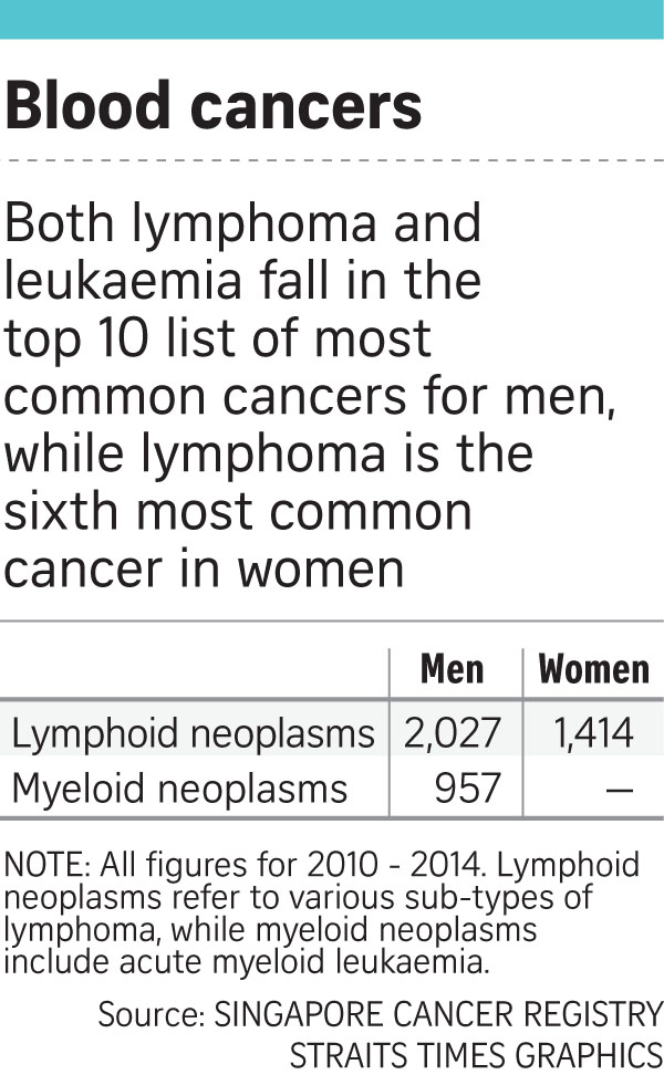 Dr Poon specialises in treating lymphoma, which is by far the most common blood cancer in Singapore, with around 600 cases a year.